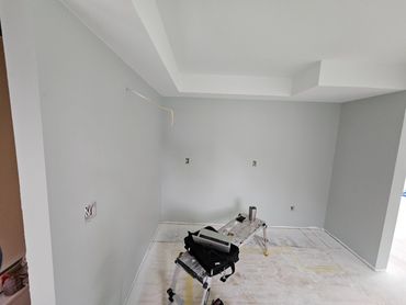 When sanding is completed and the dust is cleaned off floor and out of switch boxes its time to prime and paint.